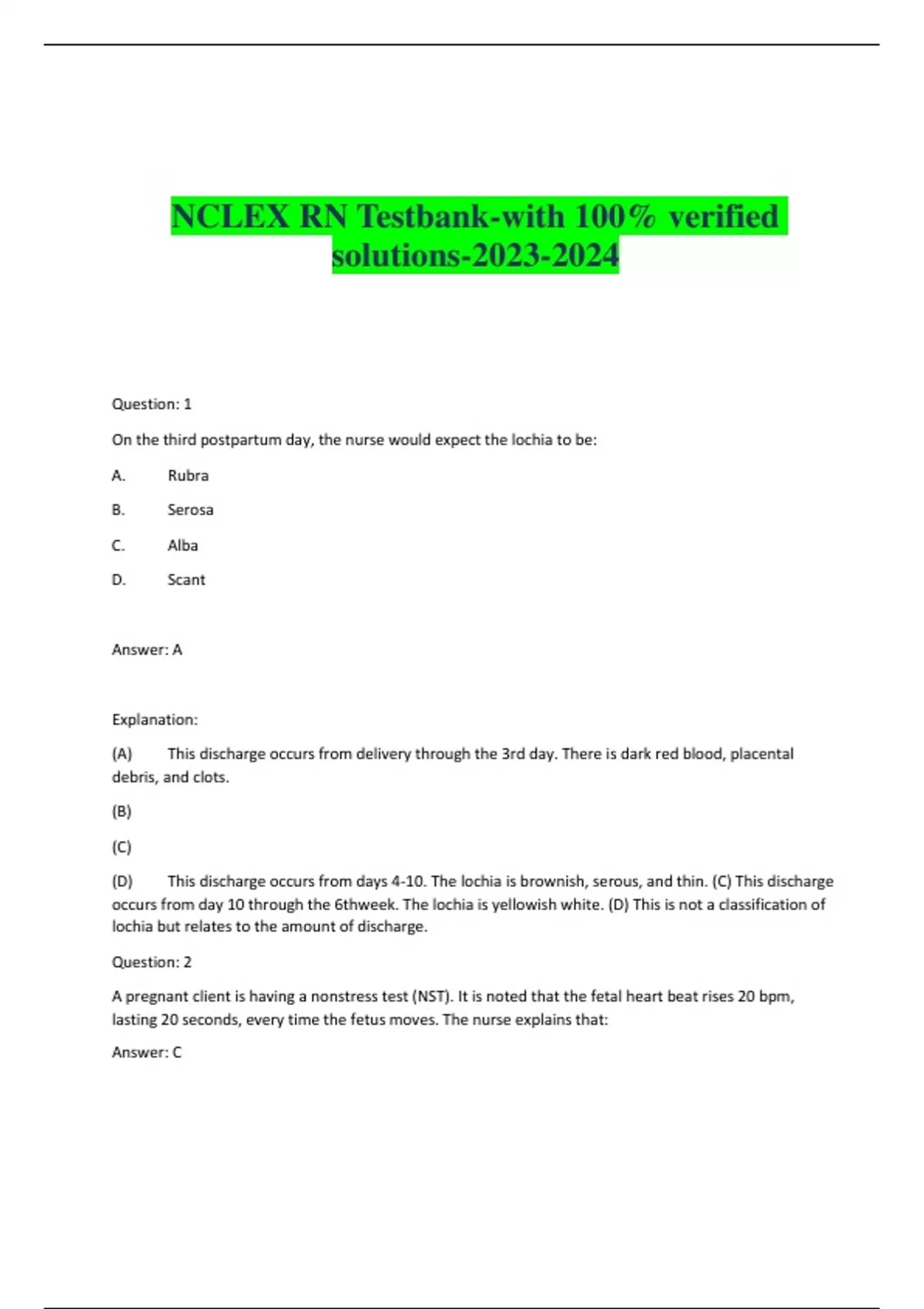 NCLEX RN Testbank-with 100% verified solutions-