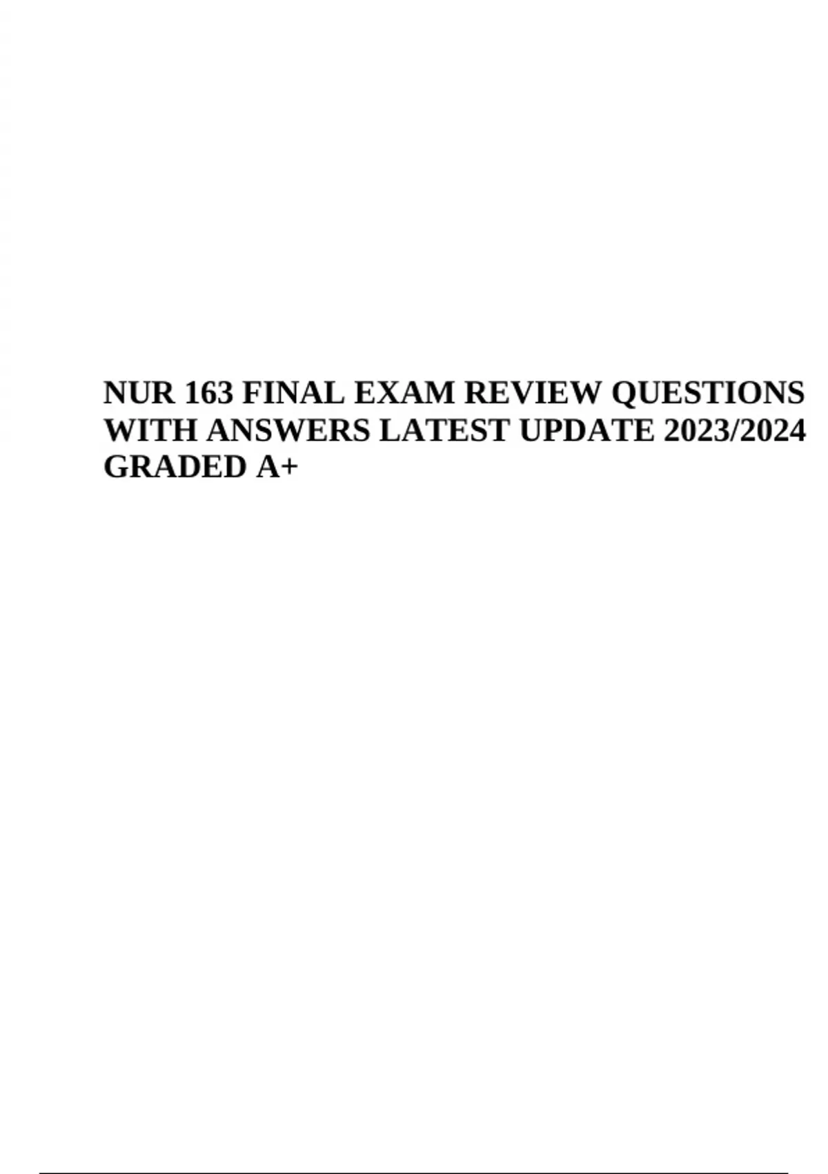 NUR 163 FINAL EXAM REVIEW QUESTIONS WITH ANSWERS LATEST UPDATE 2023/2024 | 100% Verified
