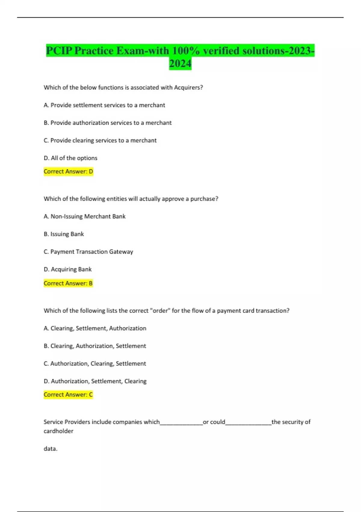 ACTUAL PCIP Practice Exam-with 100% verified solutions-