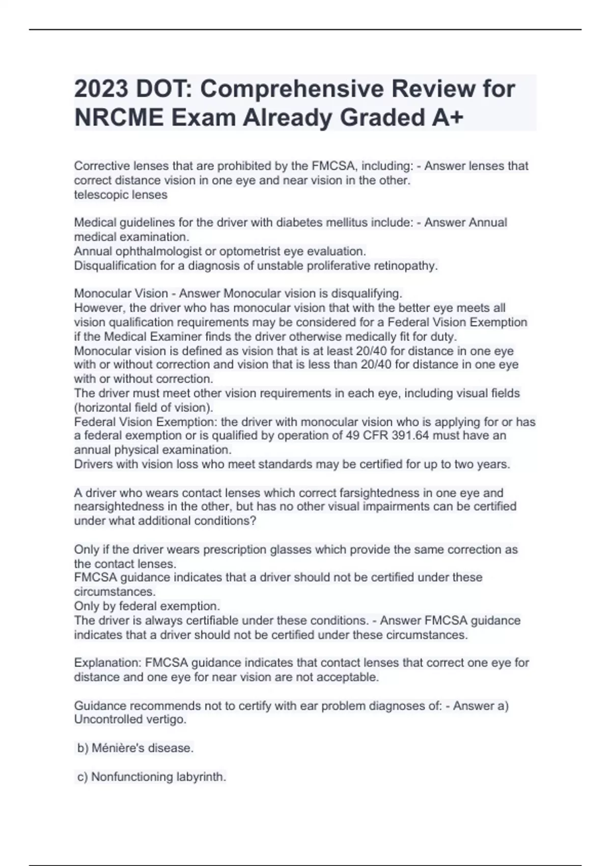 2023 DOT: Comprehensive Review for NRCME Exam Already Graded A+