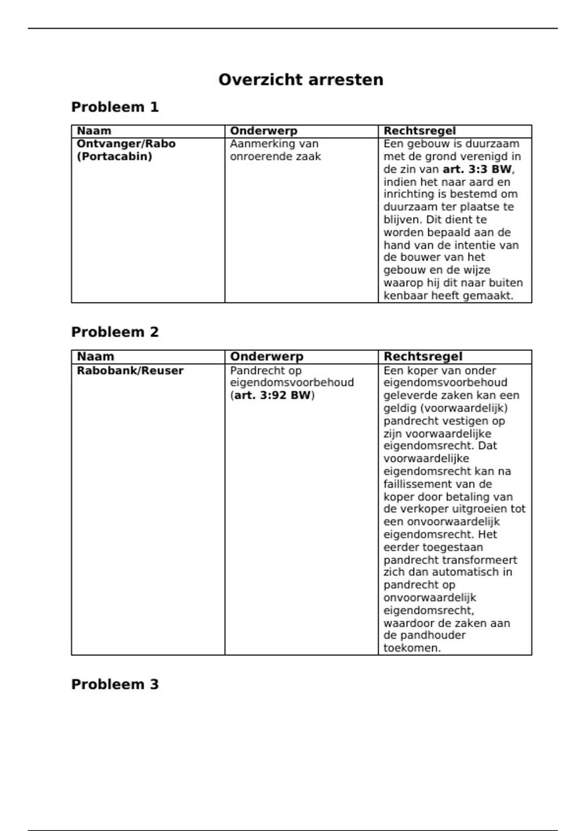 Schematisch overzicht van alle jurisprudentie van goederen- en insolventierecht waarbij het onderwerp en de rechtsregel wordt genoemd.