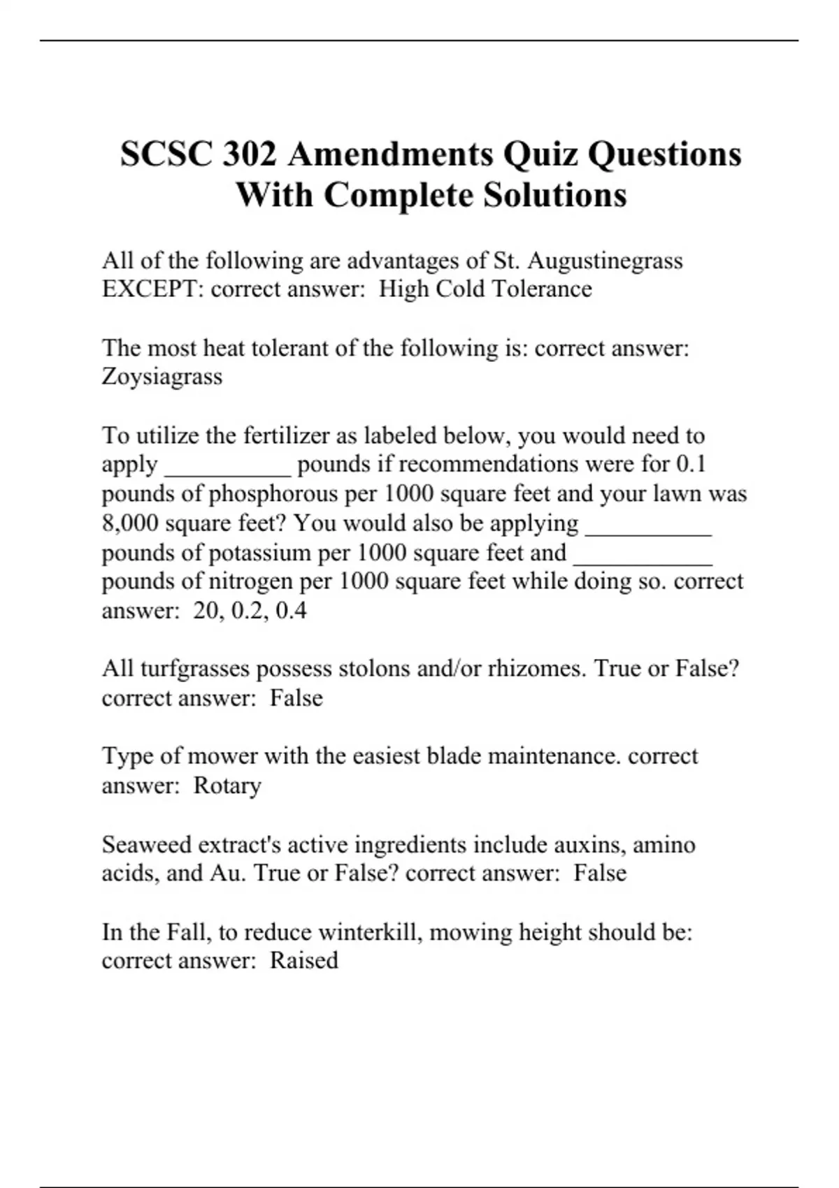 SCSC 302 Amendments Quiz Questions With Complete Solutions