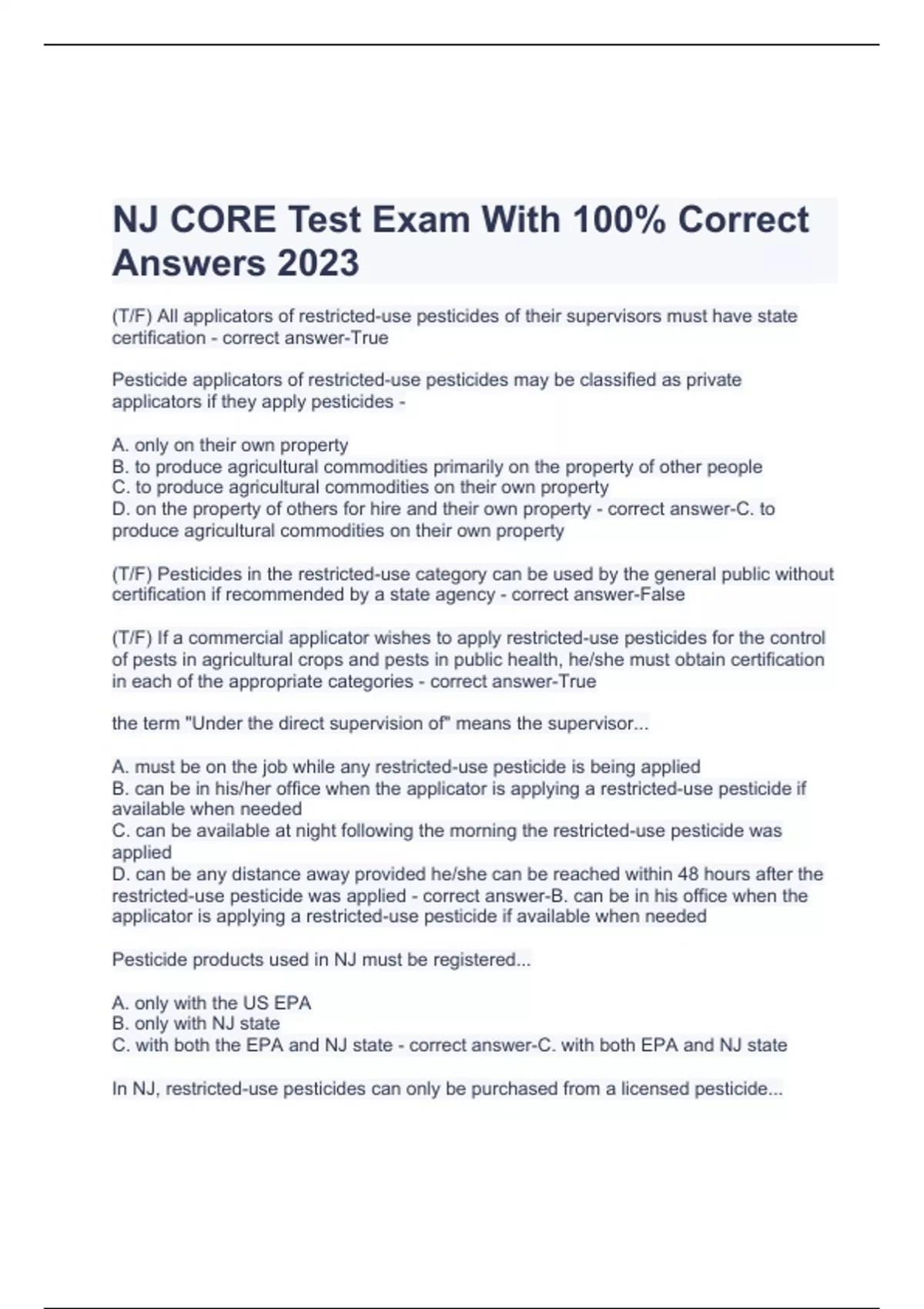 NJ CORE Test Exam With 100% Correct Answers 2023