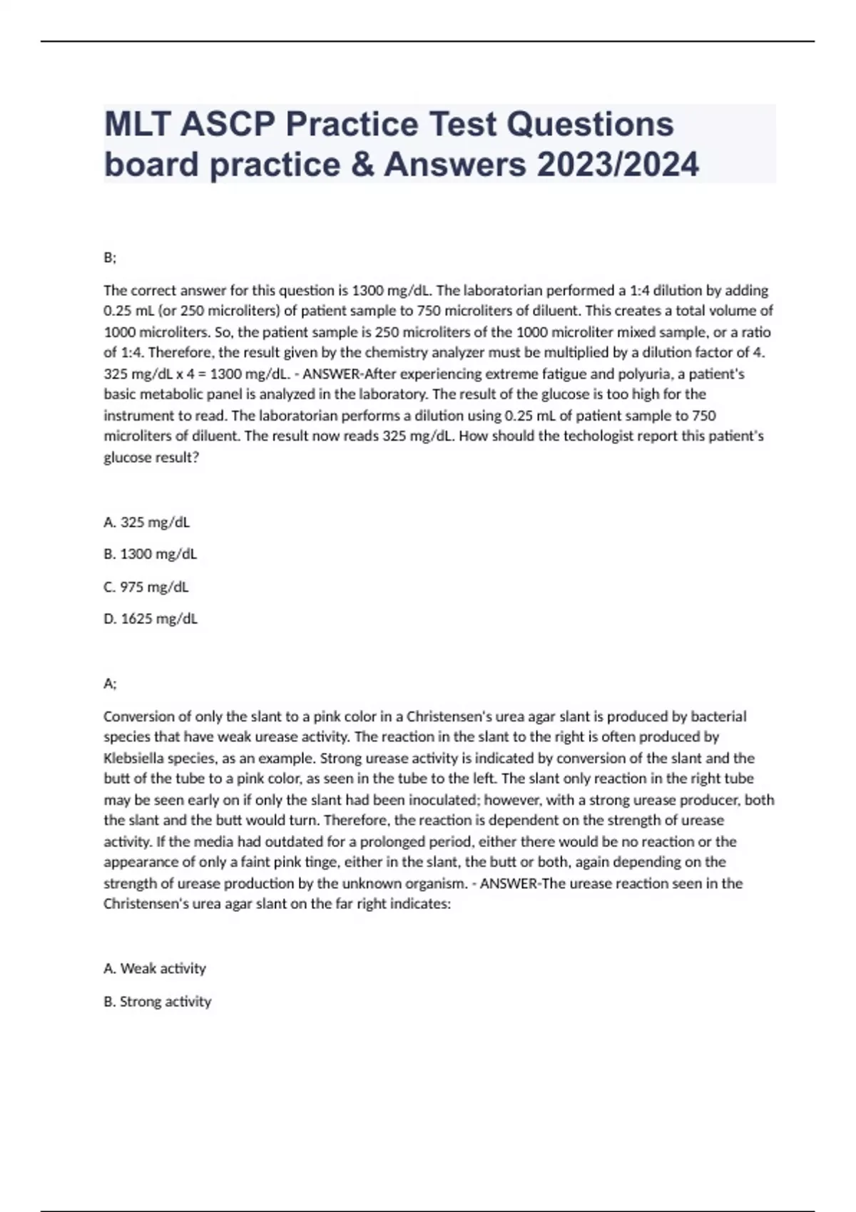325 mg/dL x 4 = 1300 mg/dL. - ANSWER-After experiencing extreme fatigue and polyuria, a patient's