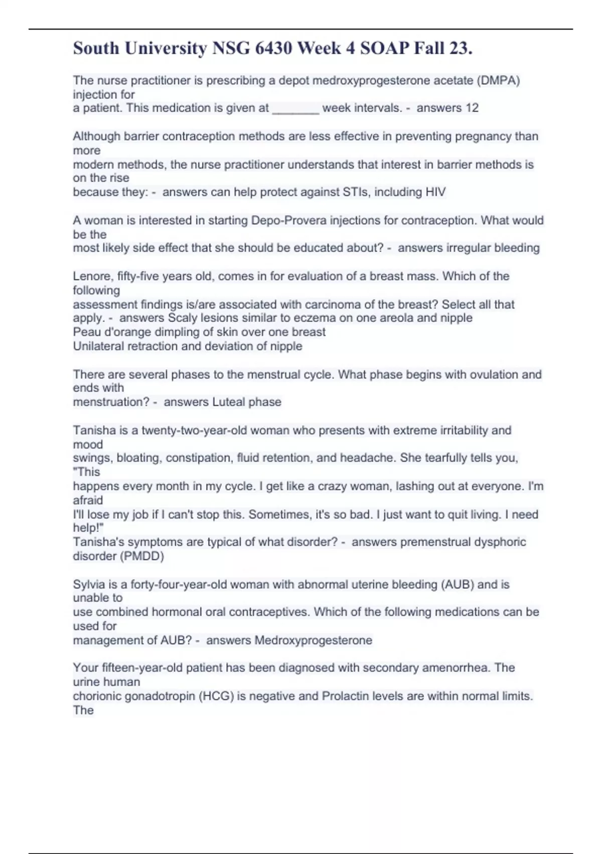 south university nsg 6430 week 4 soap fall 23