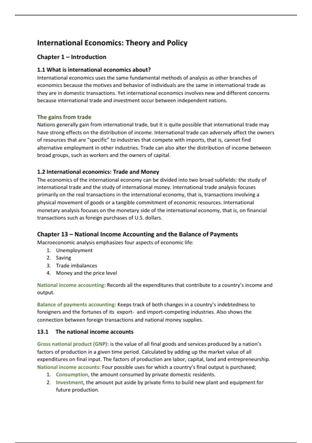 Samenvatting van het vak International Economics gegeven op Radboud Universiteit Nijmegen van de studie Economics and Business Economics