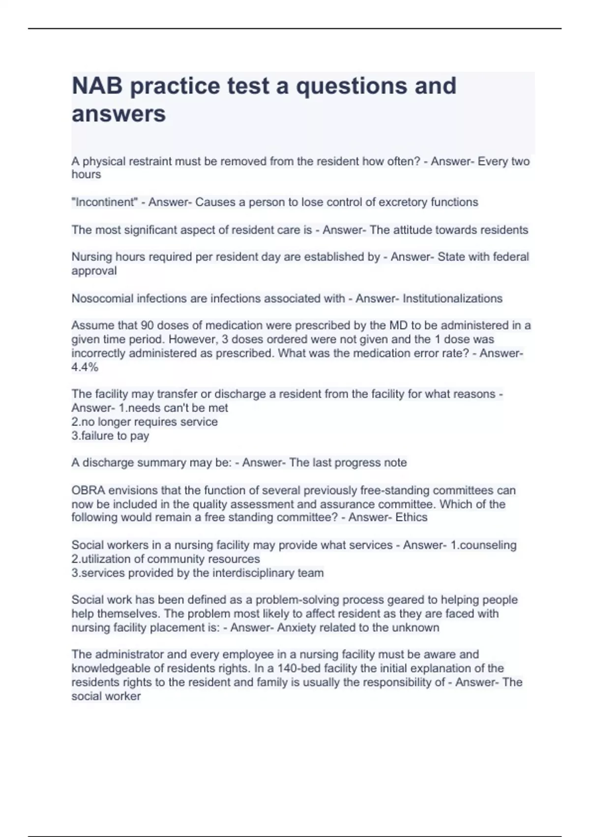 nab practice test a questions and answers