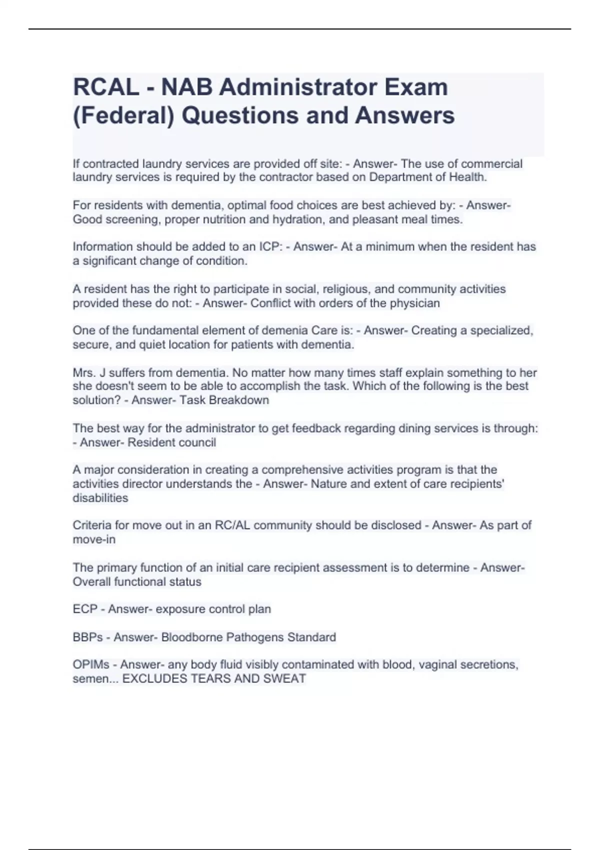 RCAL - NAB Administrator Exam (Federal) Questions and Answers