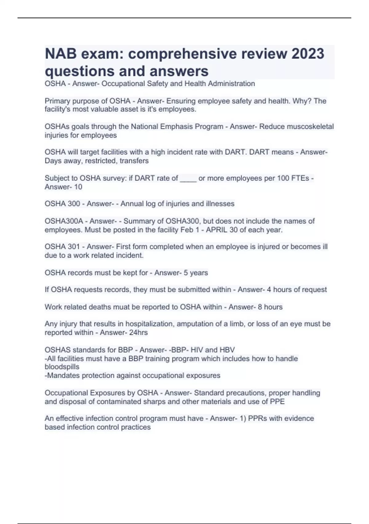 NAB exam: comprehensive review 2023 questions and answers