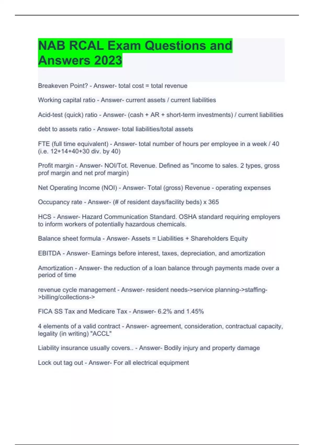 NAB RCAL Exam Questions and Answers 2023