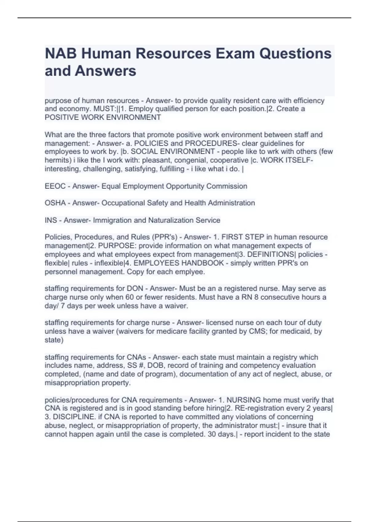 nab human resources exam questions and answers