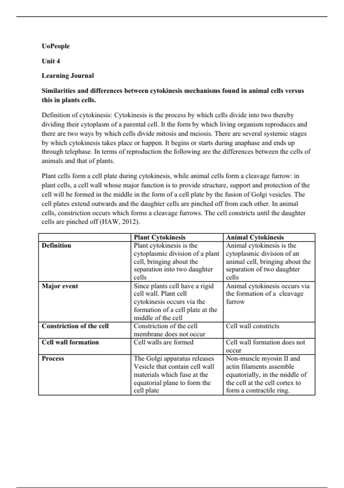 Similarities and differences between cytokinesis mechanisms found in animal cells versus this in plants cells