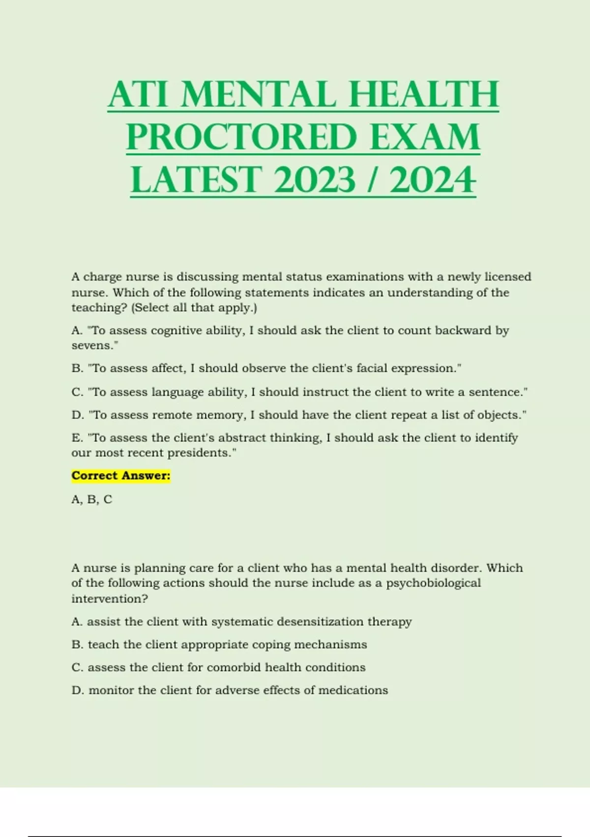 ATI MENTAL HEALTH PROCTORED EXAM (Latest 2023 / 2024)
