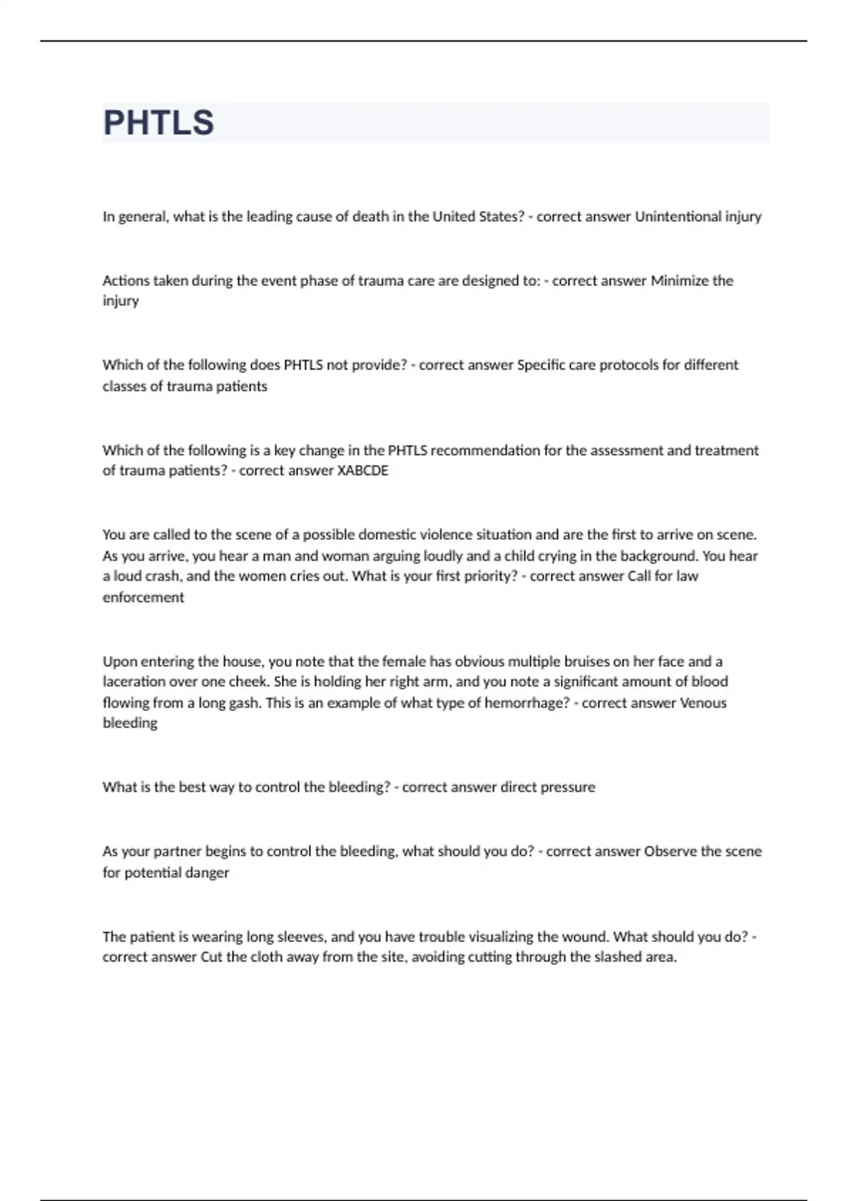 Exam of 7 pages for the course PHTLS at PHTLS (PHTLS)
