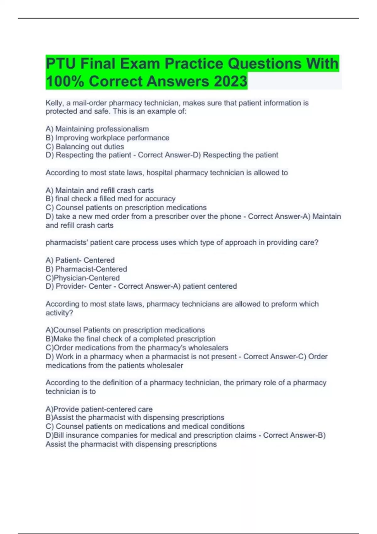 PTU Final Exam Practice Questions With 100% Correct Answers 2023