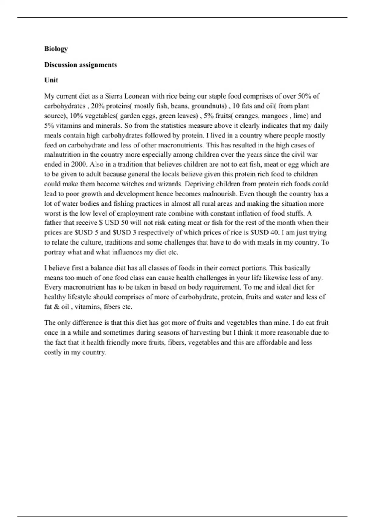 My current diet as a Sierra Leonean