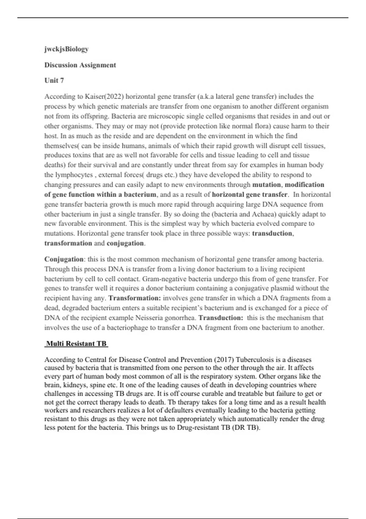 According to Kaiser(2022) horizontal gene transfer (a.k.a lateral gene transfer) includes the process by which genetic materials are transfer from one organism to another different organism not from its offspring. Bacteria are microscopic single celled organisms that resides in and out or other organisms. They may or may not (provide protection like normal flora) cause harm to their host. In as much as the reside and are dependent on the environment in which the find themselves( can be inside humans, animals of which their rapid growth will disrupt cell tissues, produces toxins that are as well not favorable for cells and tissue leading to cell and tissue deaths) for their survival and are constantly under threat from say for examples in human body the lymphocytes , external forces( drugs etc.) they have developed the ability to respond to changing pressures and can easily adapt to new environments through mutation, modification of gene function within a bacterium, and as a result of horizontal gene transfer.