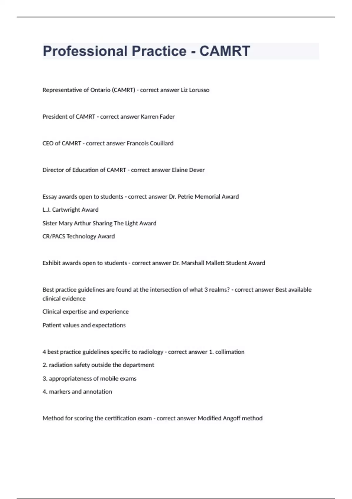 Professional Practice - CAMRT questions & answers 2023