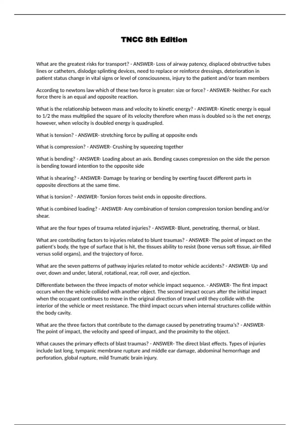 Exam of 4 pages for the course TNCC at TNCC (TNCC 8th Edition)