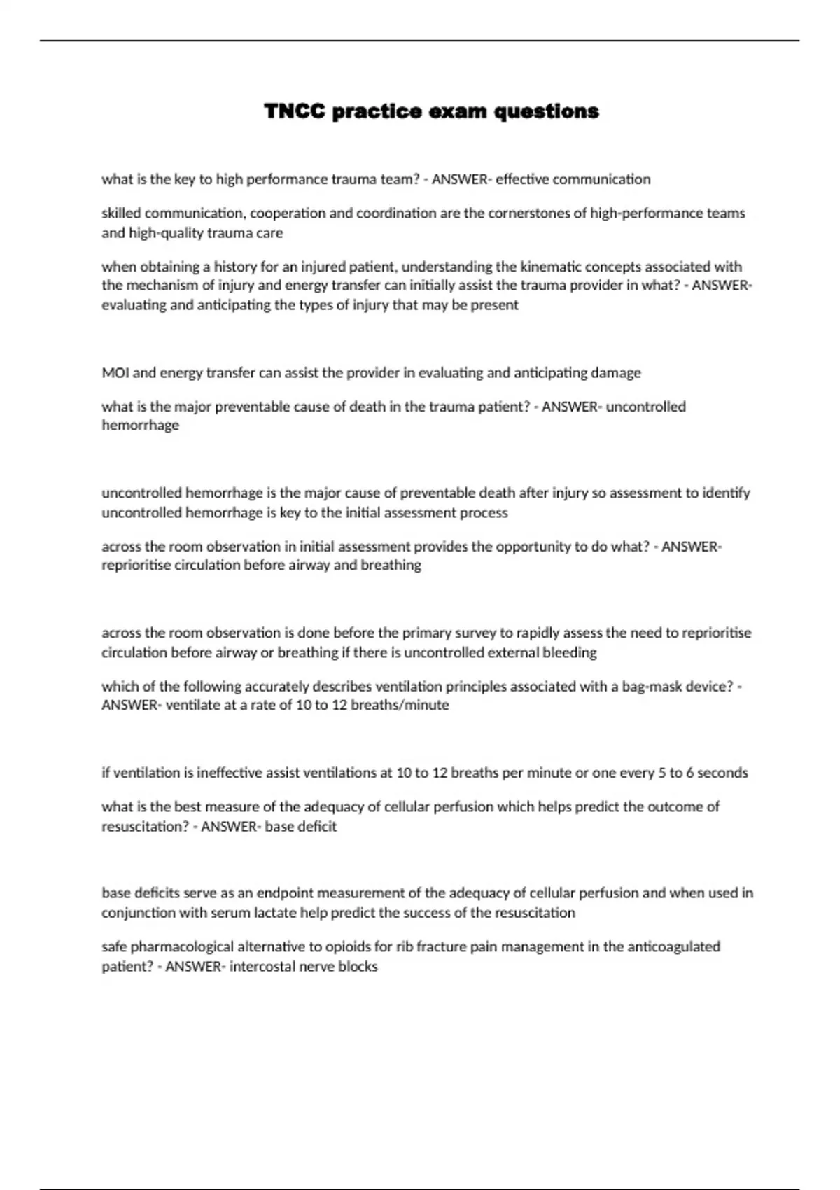 TNCC practice exam questions