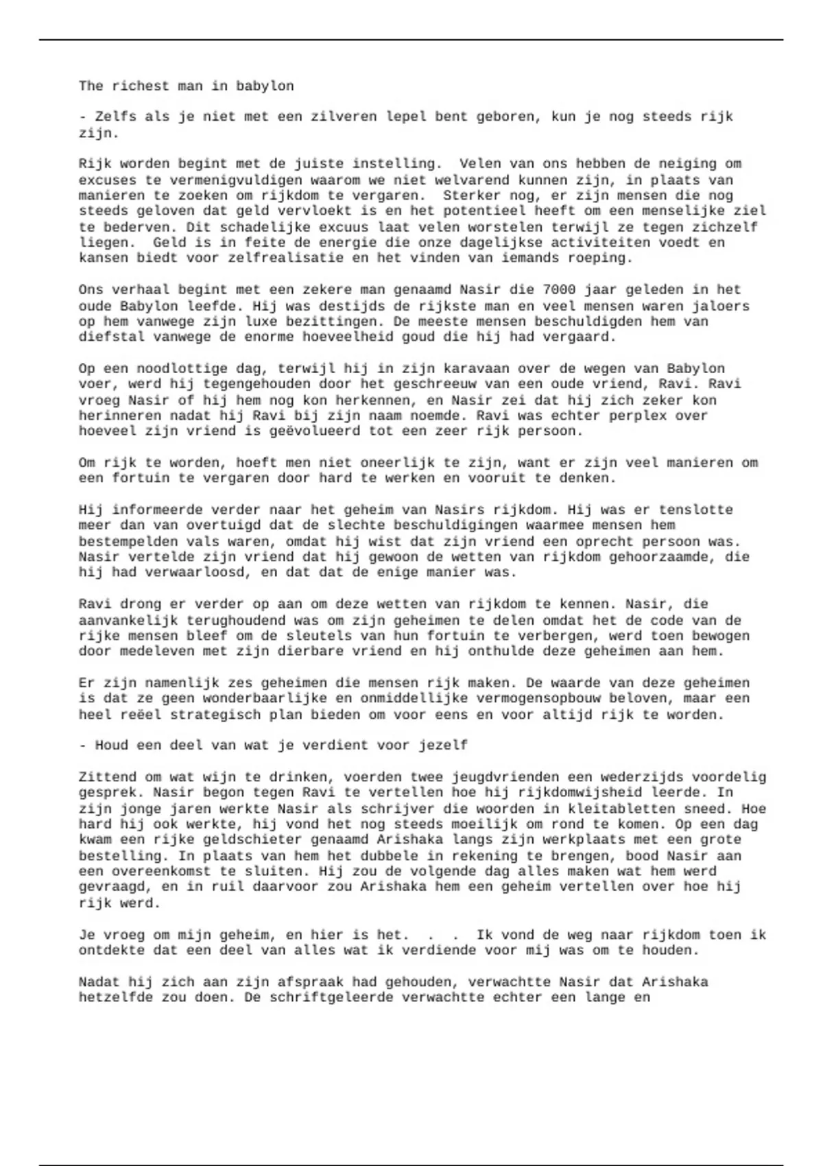 gesprek. Nasir begon tegen Ravi te vertellen hoe hij rijkdomwijsheid leerde. In