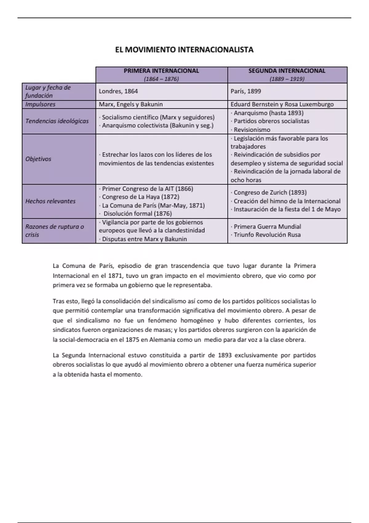 Internacional en el 1871, tuvo un gran impacto en el movimiento obrero, que vio como por