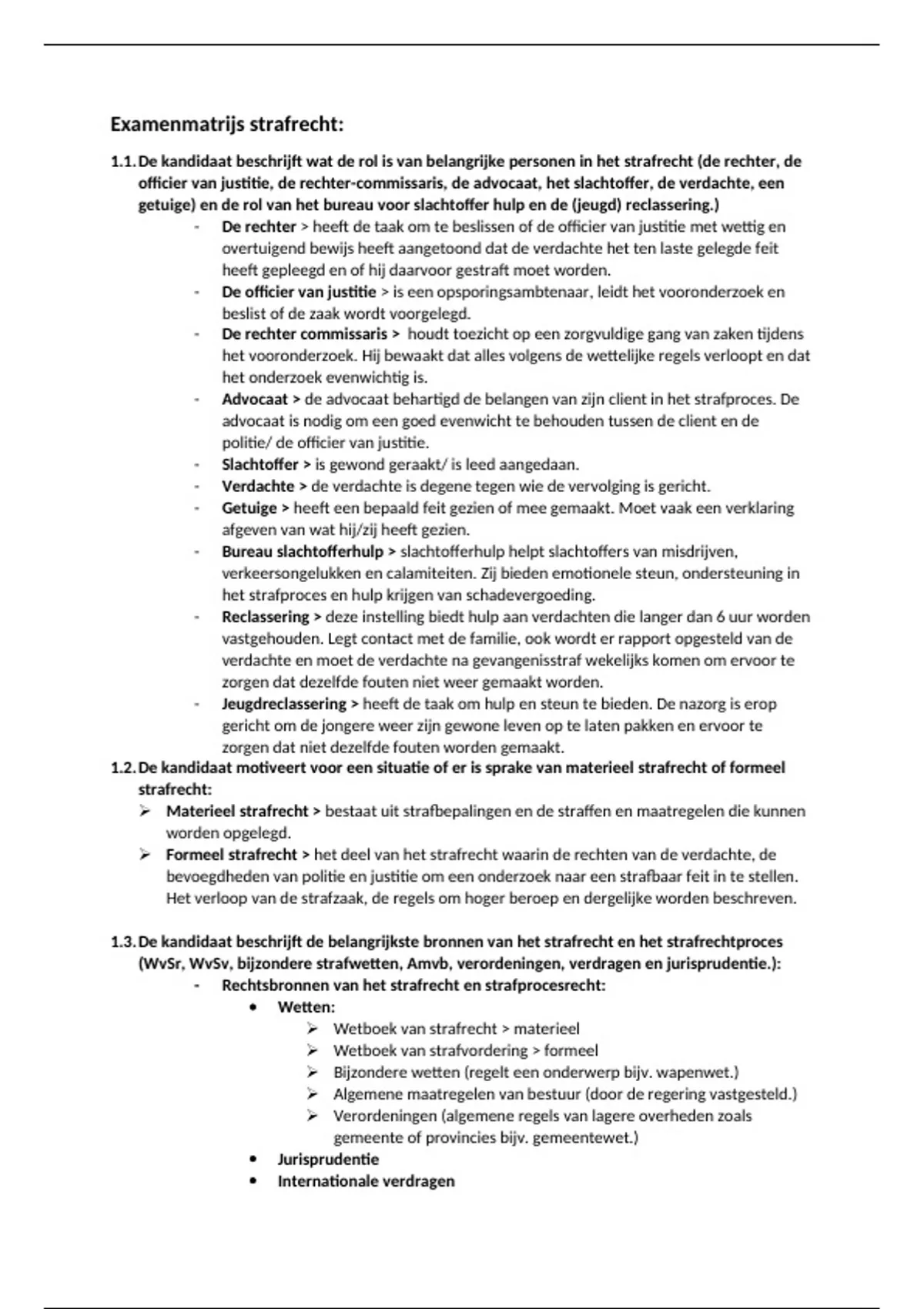 Samenvatting volledig uitgewerkte examenmatrijs strafrecht