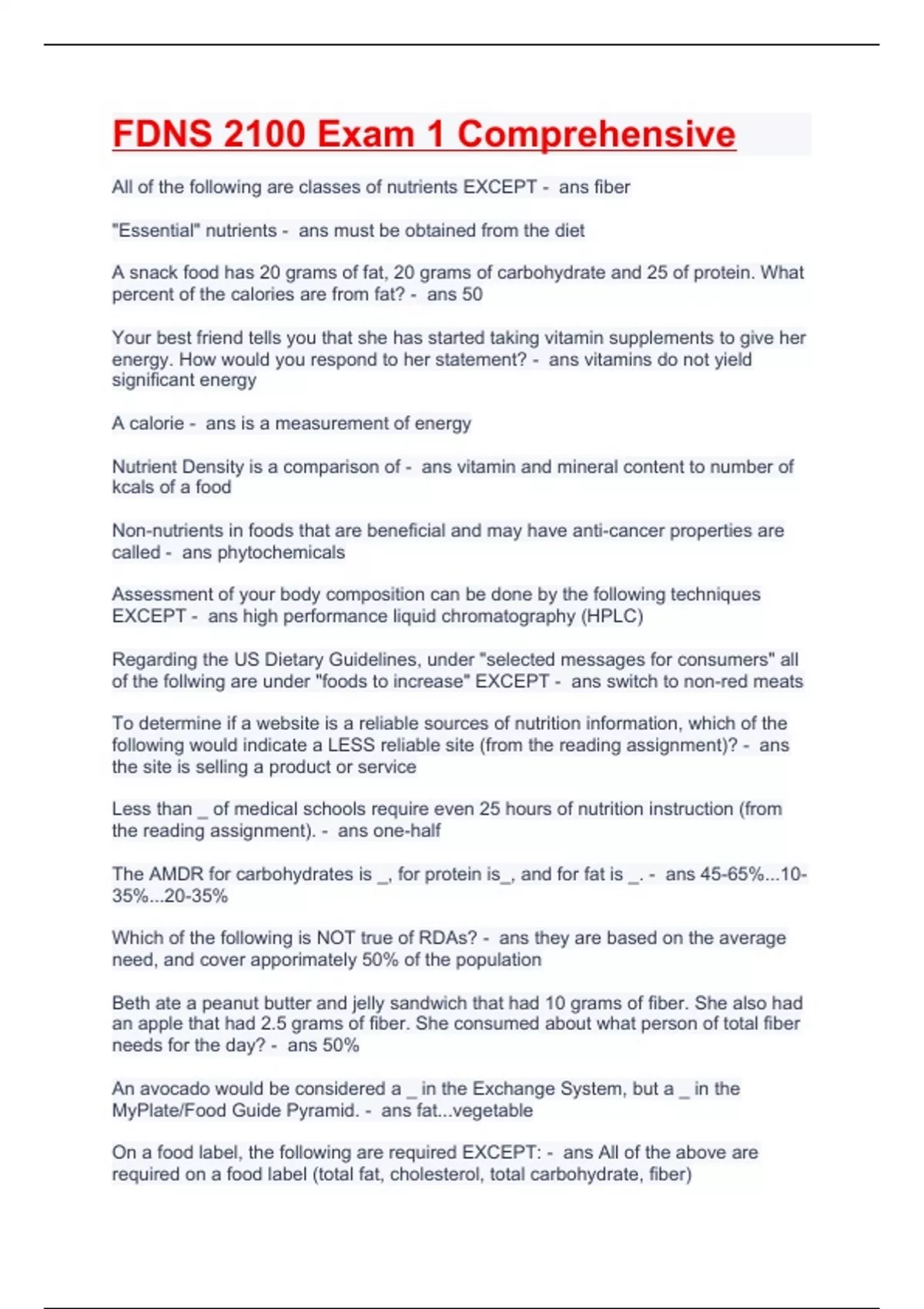 FDNS 2100 Exam 1 Comprehensive.latest 2023 graded a plus