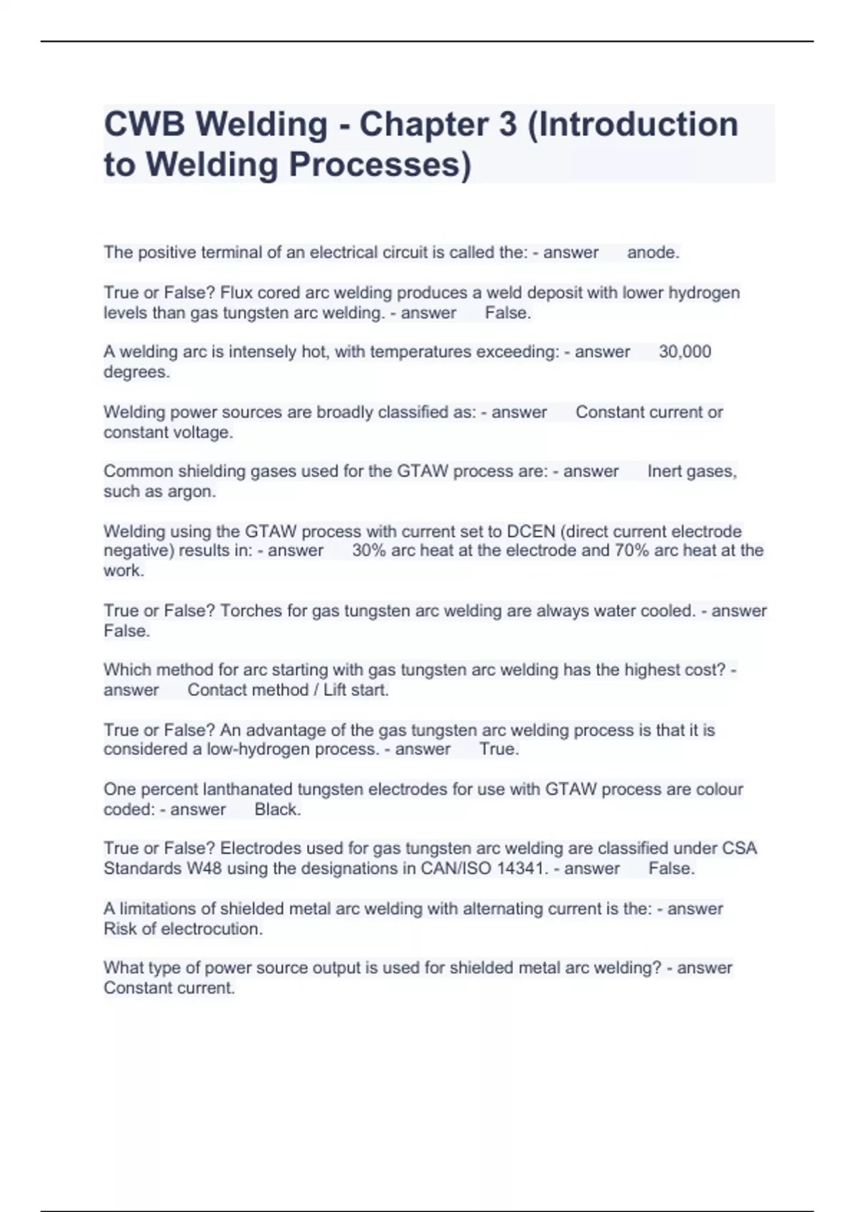 CWB Welding Questions with solutions 2023