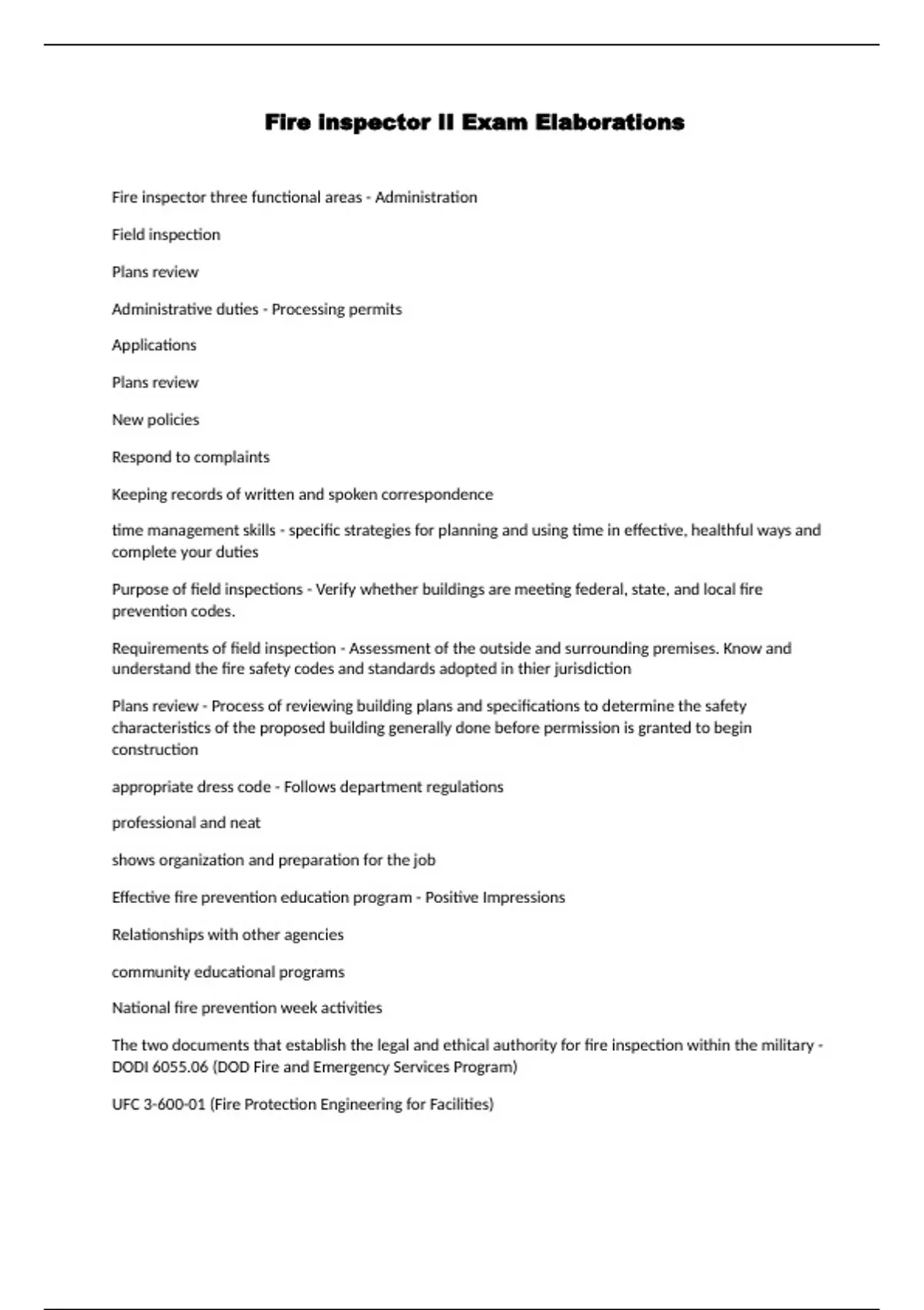 Fire inspector II Exam Elaborations