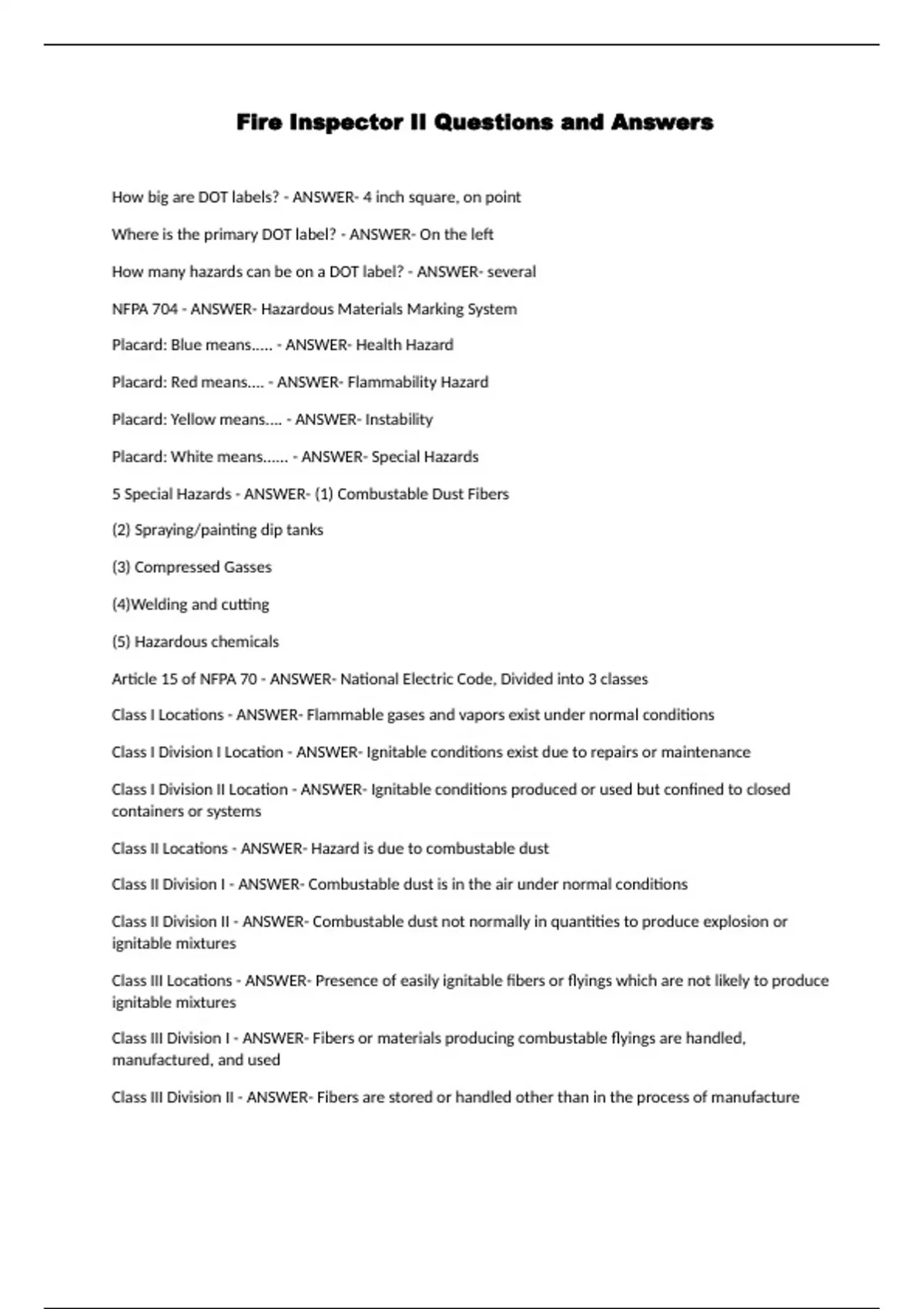 fire inspector ii questions and answers