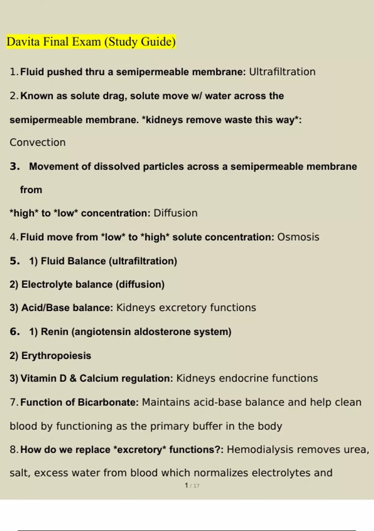 DaVita (RN) Final Exam (Study Guide) Newest Questions and Answers (2023 / 2024) (Verified Answers)