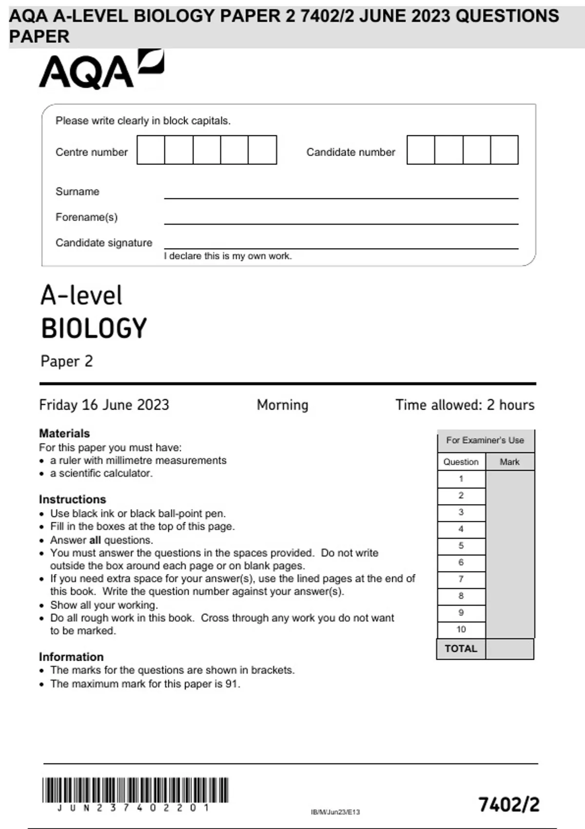 AQA A-LEVEL BIOLOGY PAPER 2 7402/2 JUNE 2023