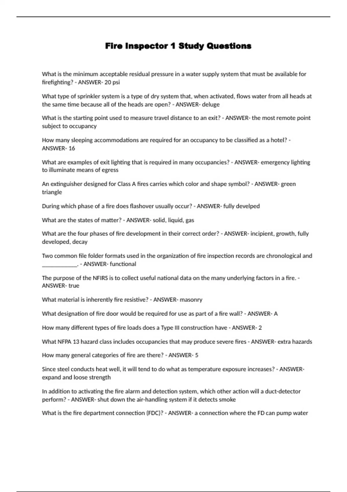 Fire Inspector 1 Study Questions