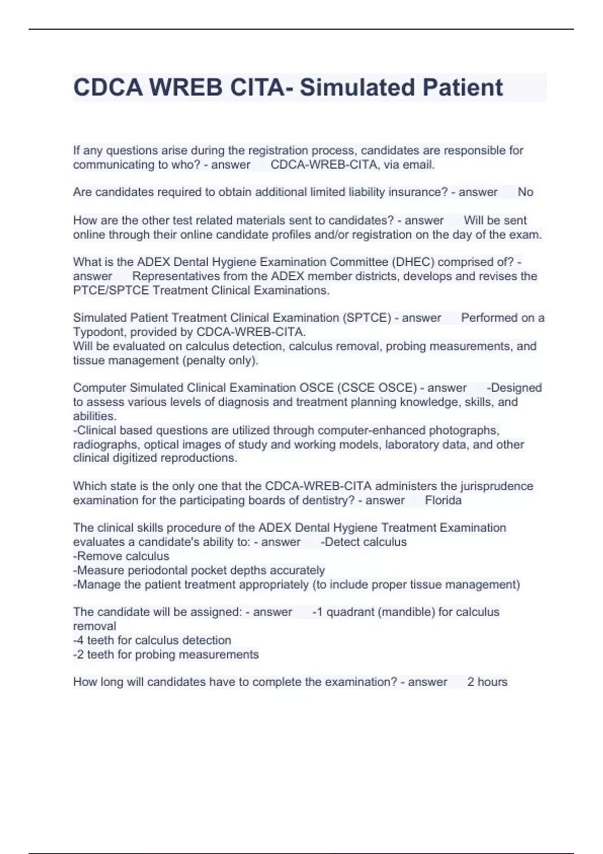 Exam of 5 pages for the course cdca at cdca (CDCA WREB CITA)