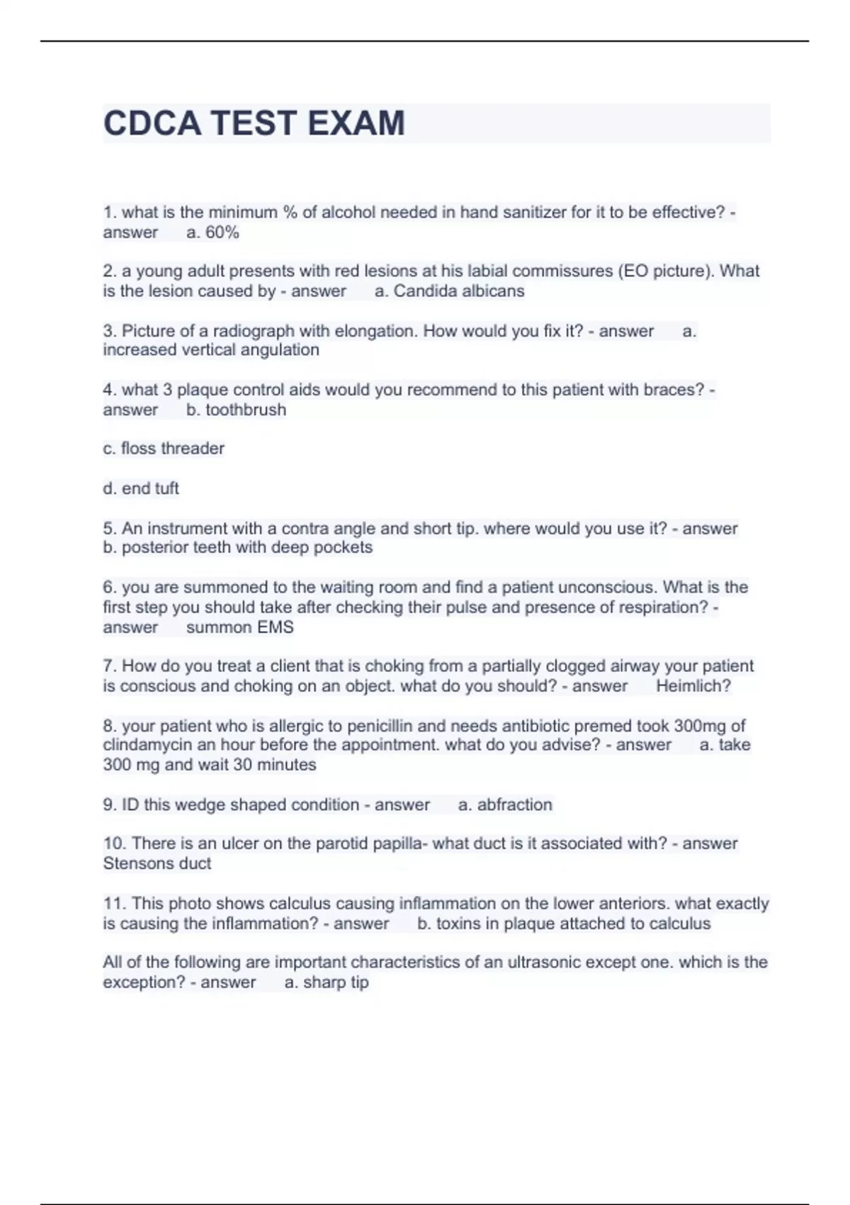 CDCA TEST EXAM QUESTIONS ANSWERED 100% CORRECT
