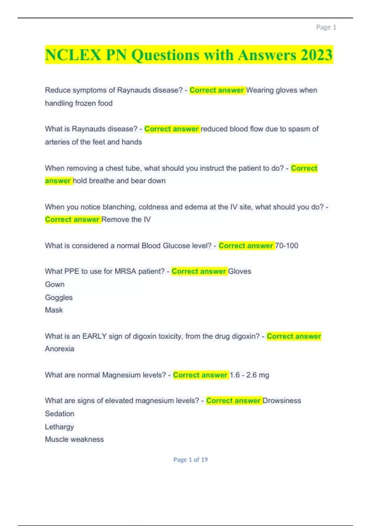 NCLEX PN Questions with Answers 2023