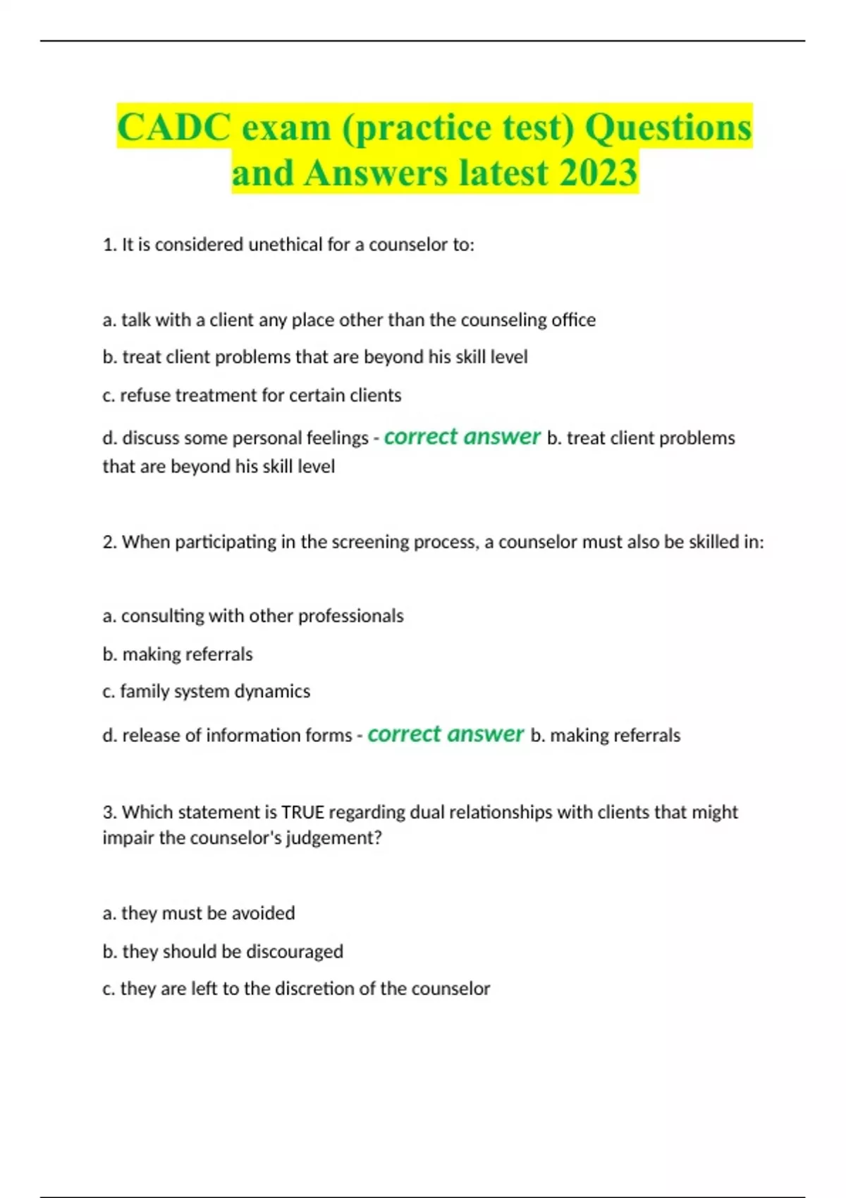 CADC exam (practice test) Questions and Answers latest 2023