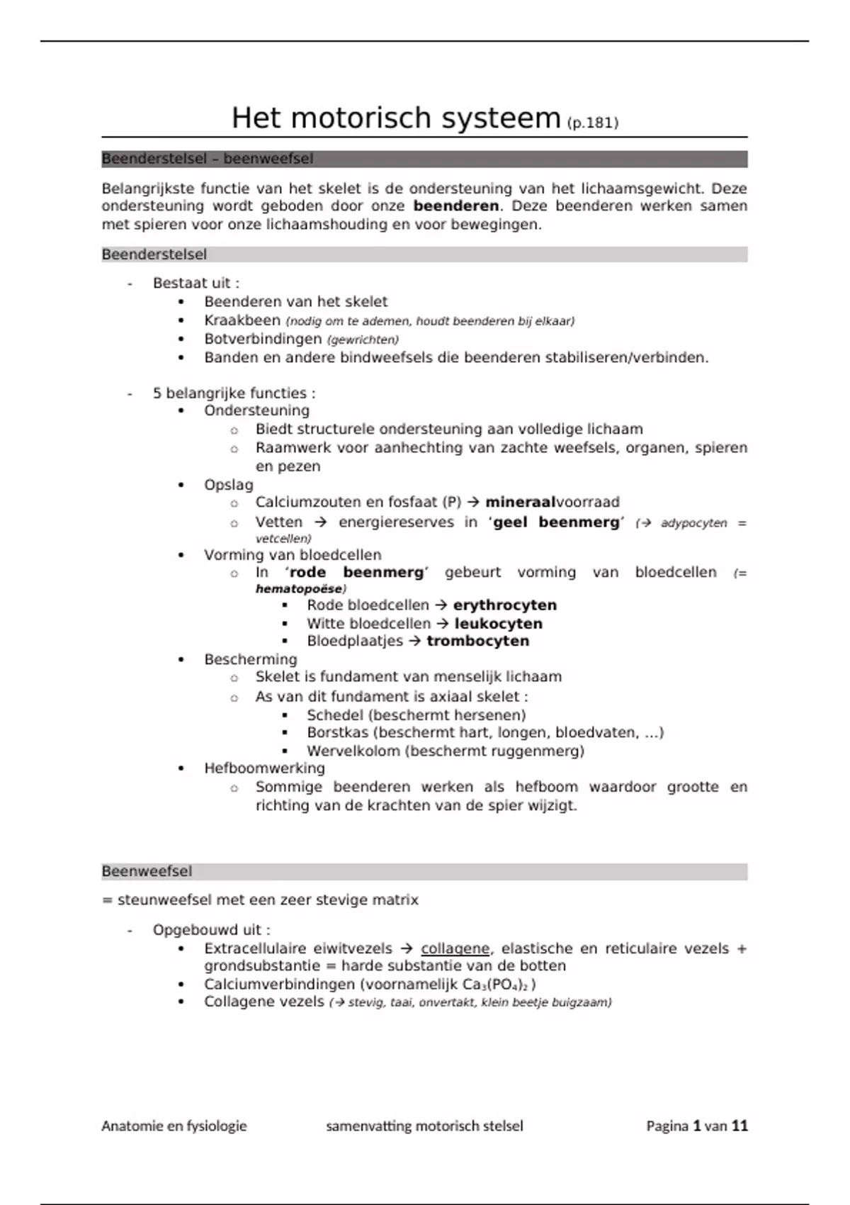 Anatomie en fysiologie samenvatting motorisch stelsel Pagina 1 van 11