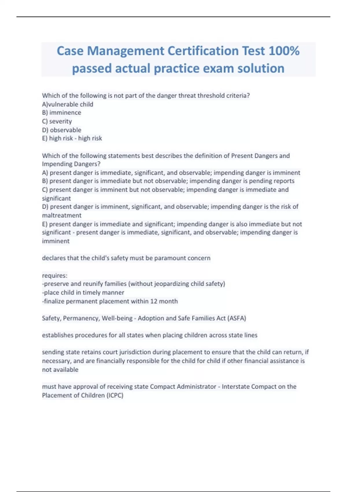 Case Management Certification Test 100% passed actual practice exam solution