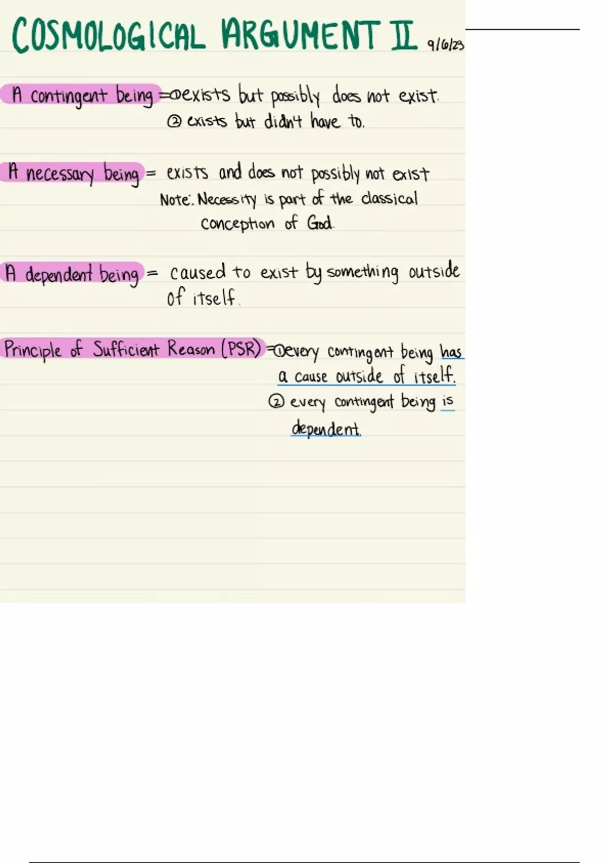 UCF PHI 2010 Intro to Philosophy Fall 2023 Professor Barker Covers: - Contingent being - Necessary being - Dependent being - Principle of Sufficient Reason (PSR) - Contingency Cosmological Argument - Collection C - Weak objections - Stronger objections