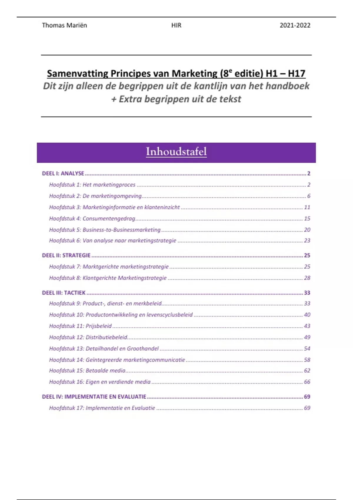 Samenvatting Principes van Marketing (8e editie) H1 – H17