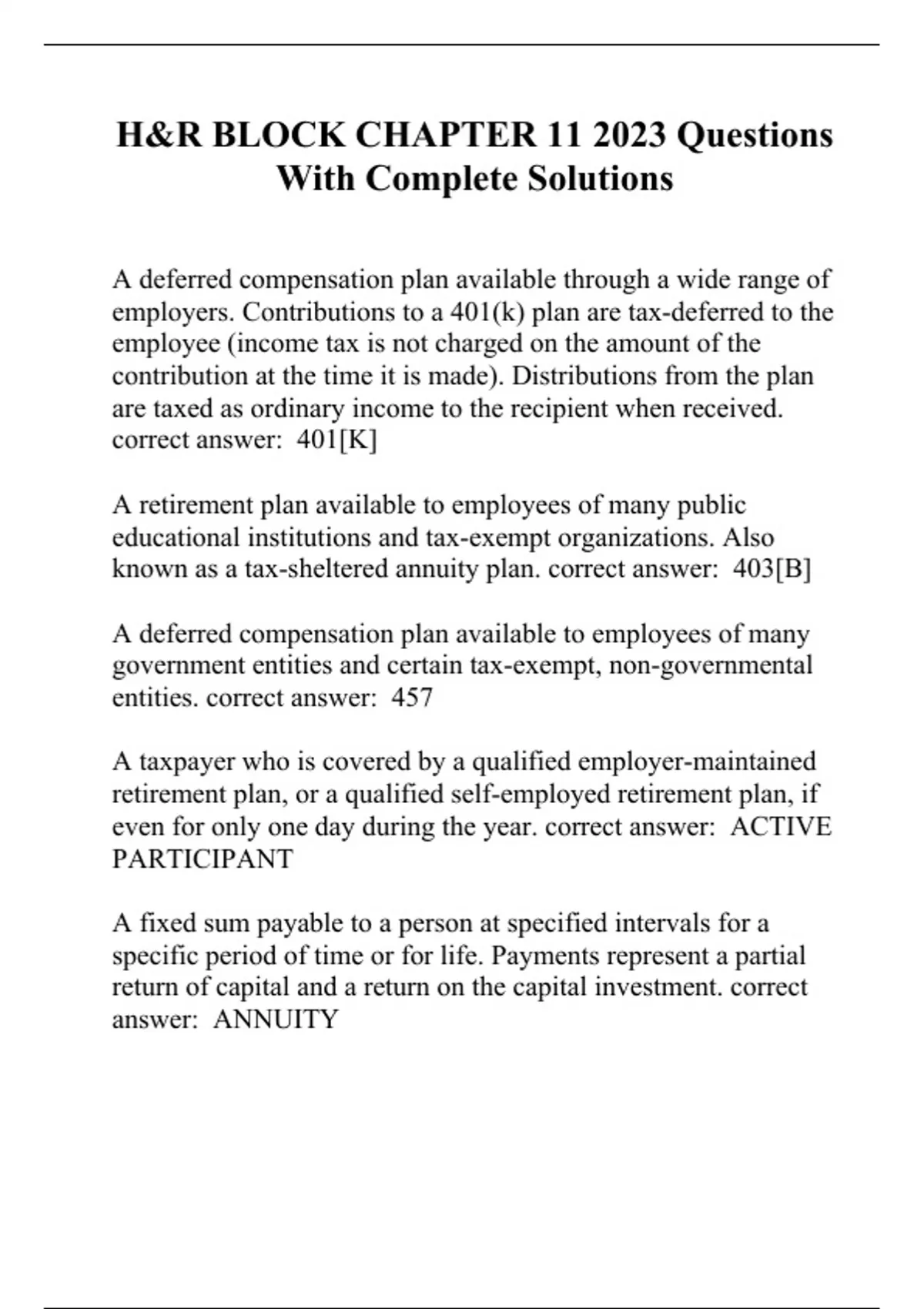 H&R BLOCK CHAPTER 11 2023 Questions With Complete Solutions