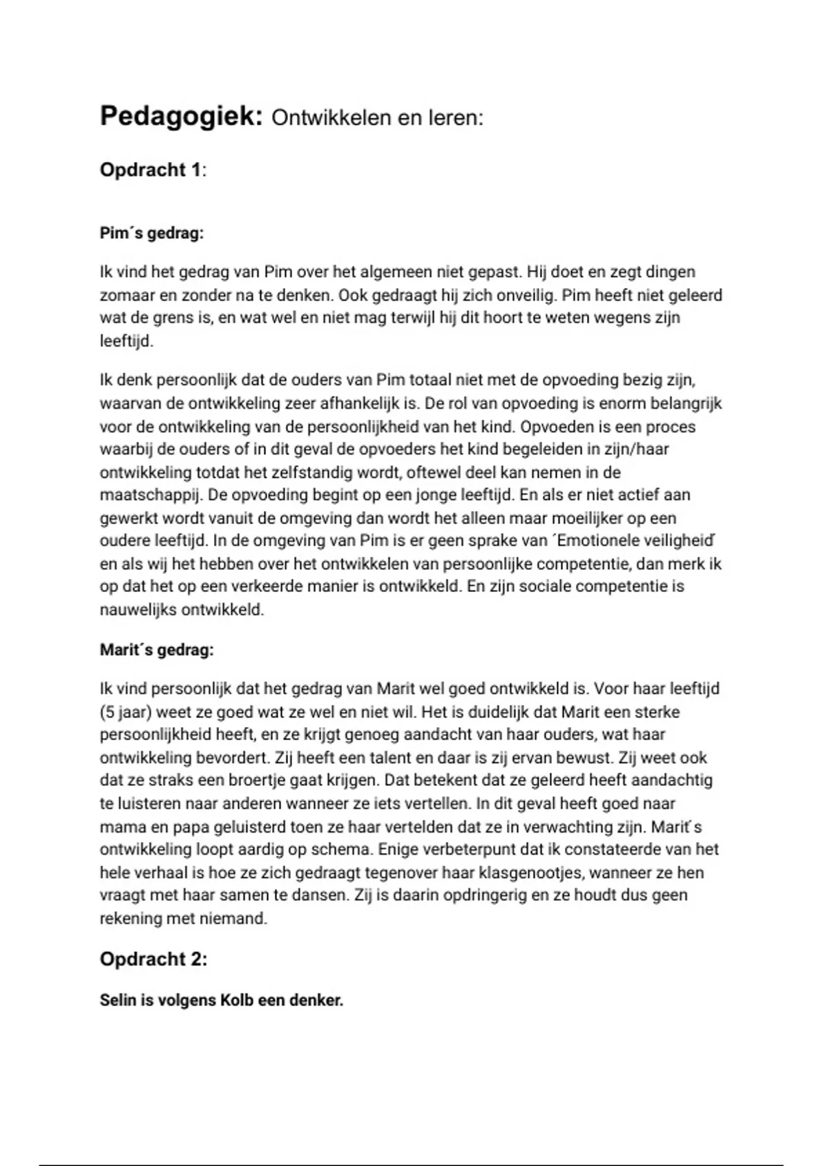 Ik vind persoonlijk dat het gedrag van Marit wel goed ontwikkeld is. Voor haar leeftijd