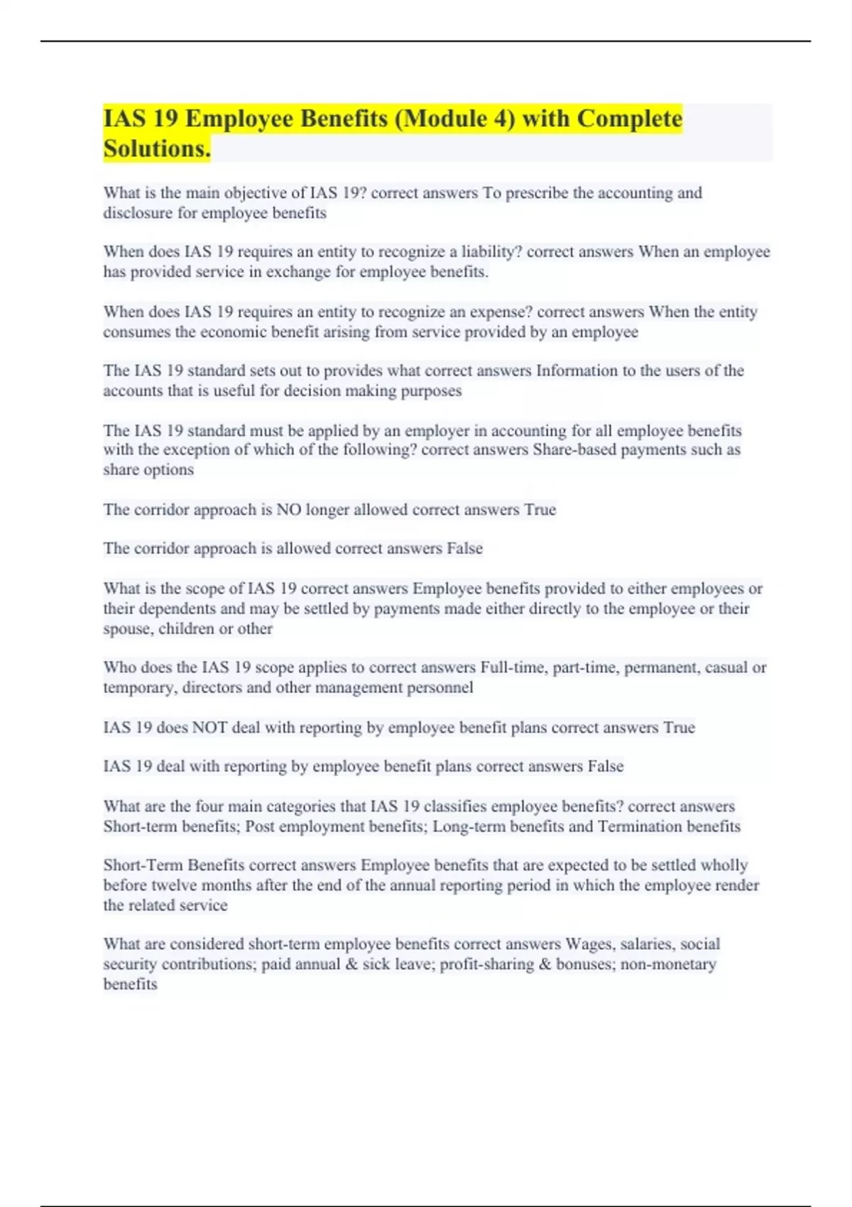 IAS 19 Employee Benefits (Module 4) with Complete Solutions.