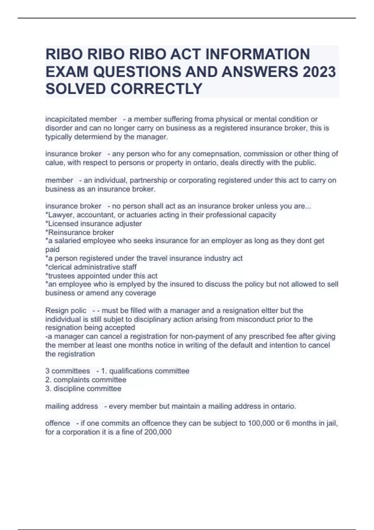 RIBO RIBO RIBO ACT INFORMATION EXAM QUESTIONS AND ANSWERS 2023 SOLVED CORRECTLY
