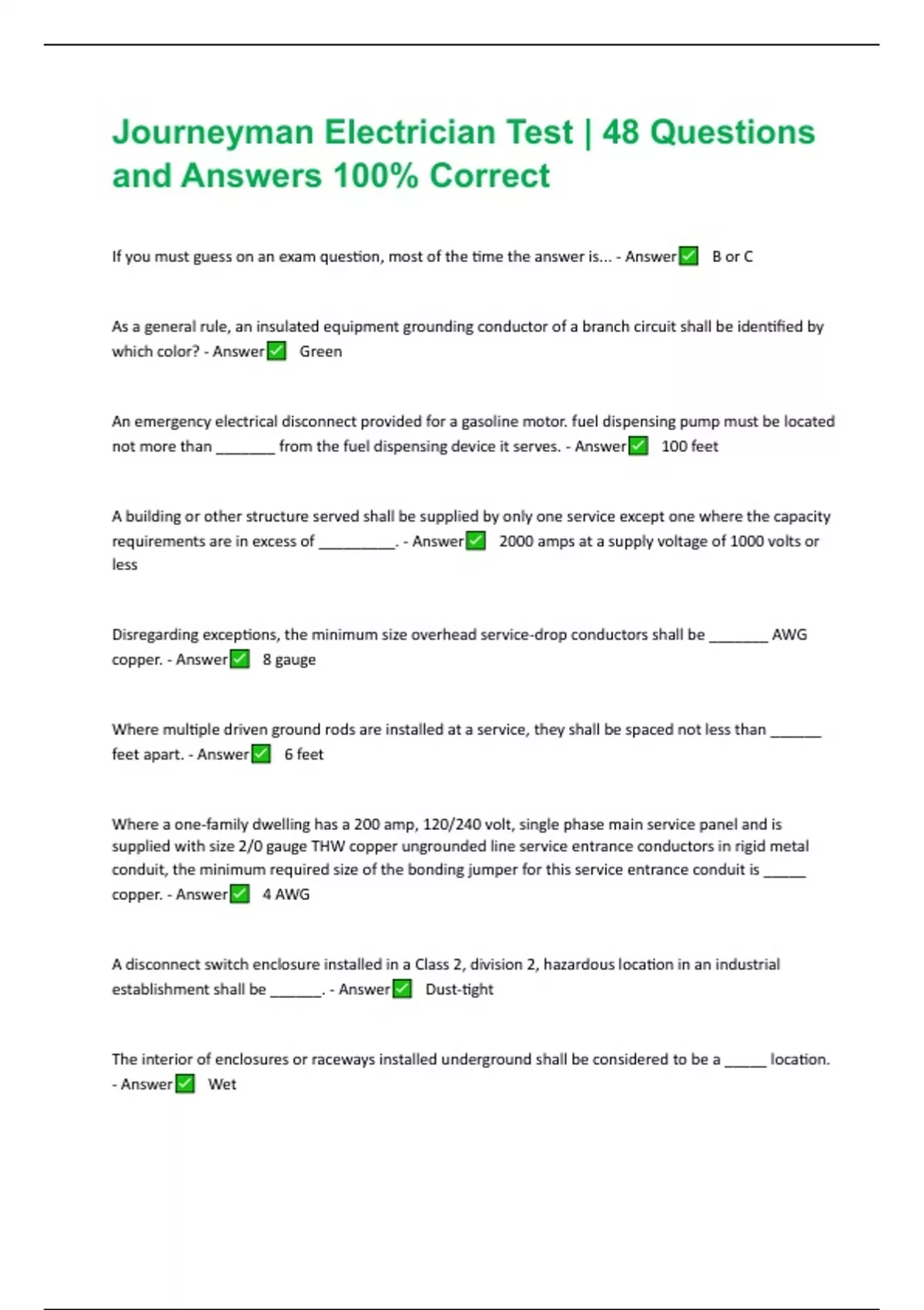 Journeyman Electrician Test | 48 Questions and Answers 100% Correct