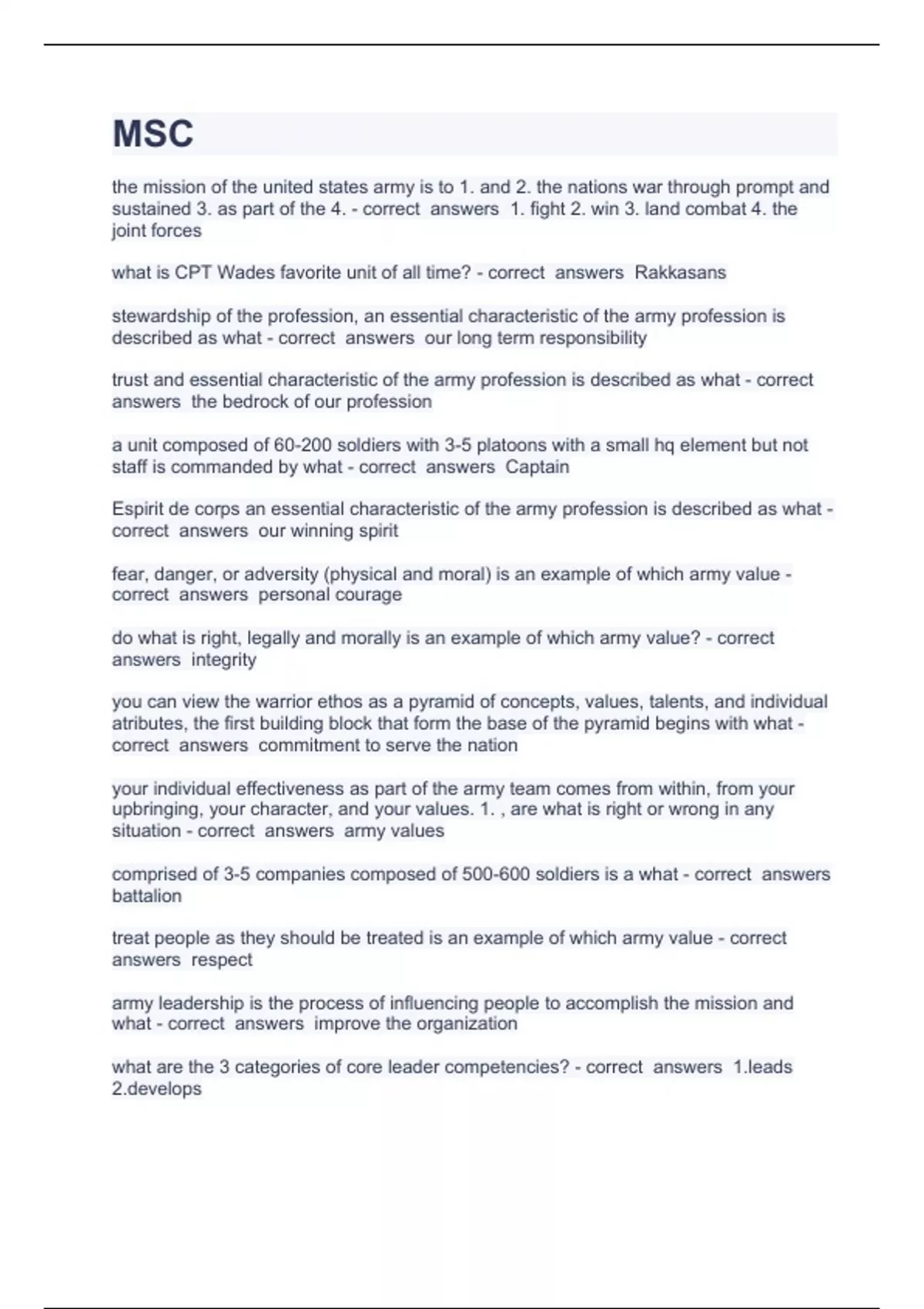 MSC Question and answers 2023 verified to pass