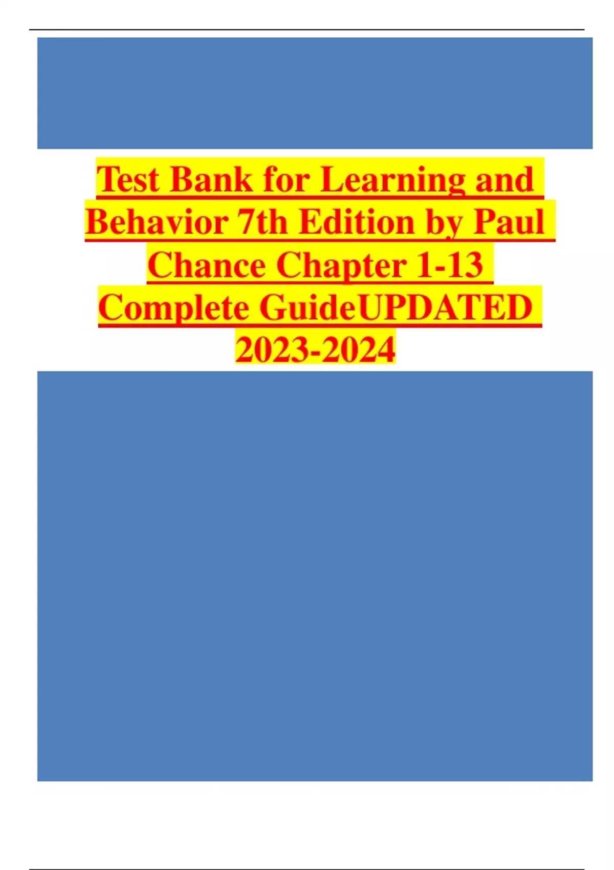 Test Bank for Learning and Behavior 7th Edition by Paul Chance Chapter 1-13 Complete Guide