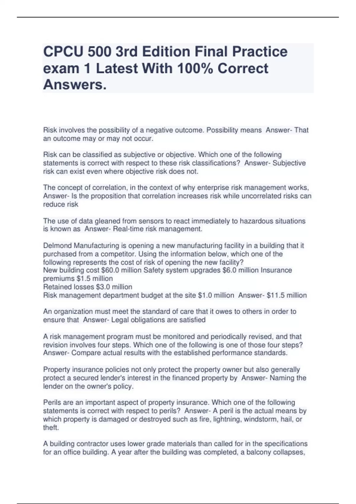 CPCU 500 3rd Edition Final Practice exam 1 Latest With 100% Correct Answers.